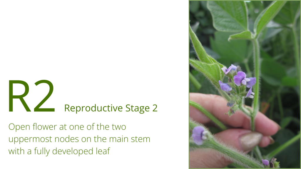 Learn more from A Visual Guide To Soybean Growth Stages. Thank you to Shawn P. Conley, University of Wisconsin-Madison, for the use of images from that publication.