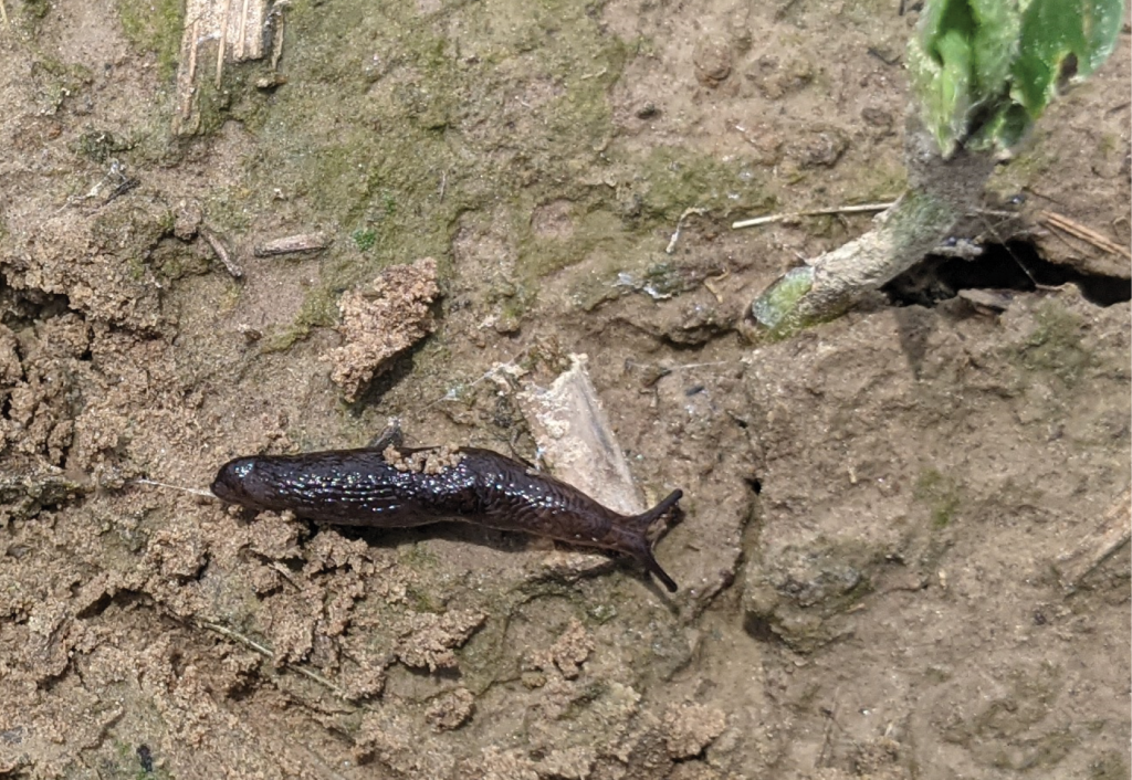 Slugs may be problematic in fields with a high level of plant residue on the soil surface (e.g., notill fields), especially in environments such as cool temperatures, high soil moisture, and cloud cover that result in slow plant growth. Slugs can feed on soybean cotyledons and the growing point, which can kill plants.